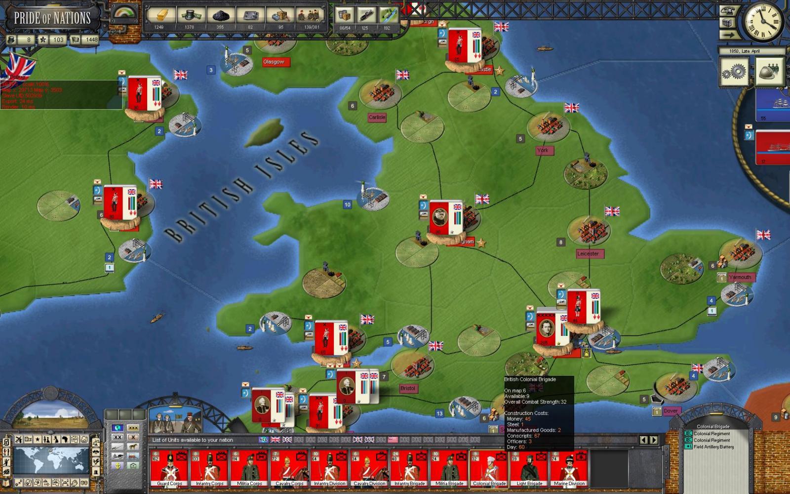 Though as a GBR player myself, I don't understand why you would ever want to build a colonial brigade. Both the regular and light infantry brigades are stronger and suitable for action in North America as well as Europe. BLK colonials are stronger and more survivable in Africa. I've been putting Indian regular and light infantry to good use in Egypt and Sudan as well.