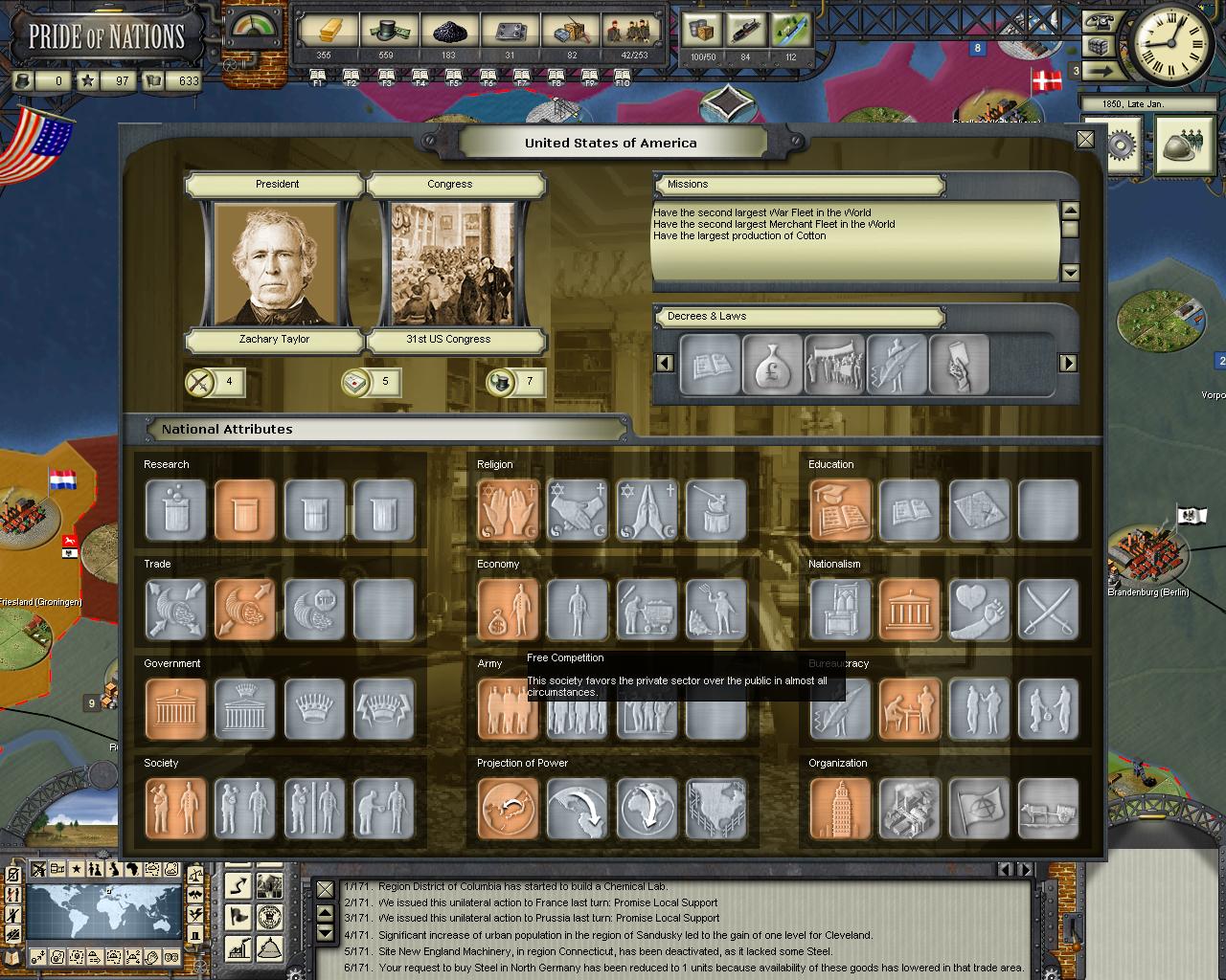 (later in game 5, i still havent invested in plantations yet, nor in ammo / supplies, no shipbuilding and no second californian goldrush event, foreign investment yet neither but two mines in Mexico, no additional RR build)