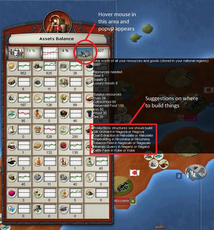 If you hover over the box on the top right of the Balance screen (B), it shows some recommended builds and provinces. Not sure, but I think that's what you mean.