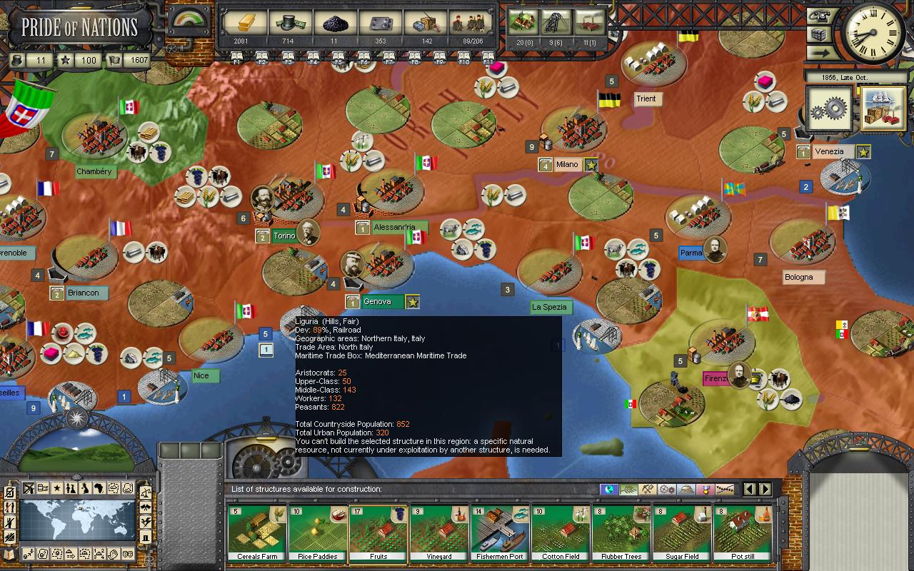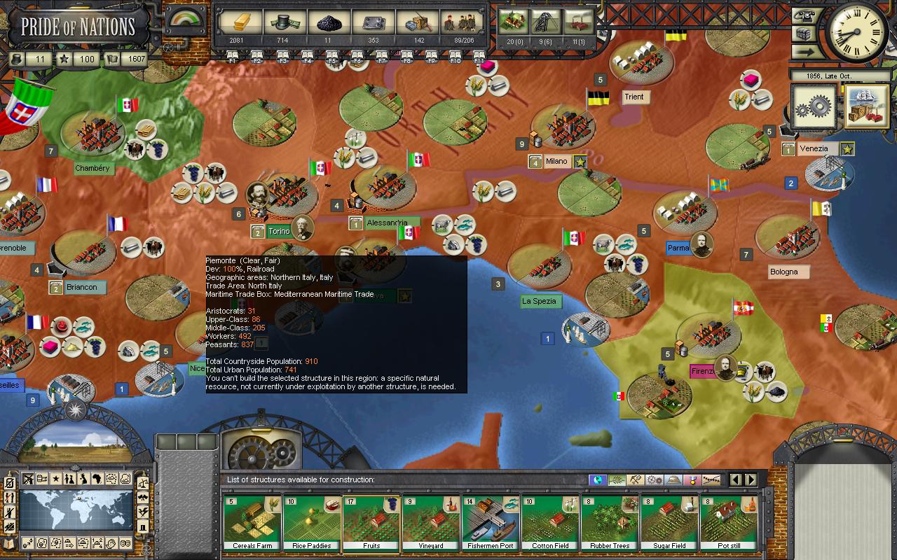 I play as Sardinia - Piemonte and I wanted build a fruit field in some regions of mine, but I cannot do it. For example in Liguria but also in Turin, the pop up message says "you cannot build this structure, another resource actually under not exploitation, is required", but strange I can do it in La Spezia.