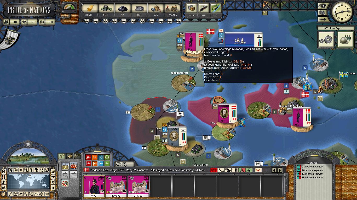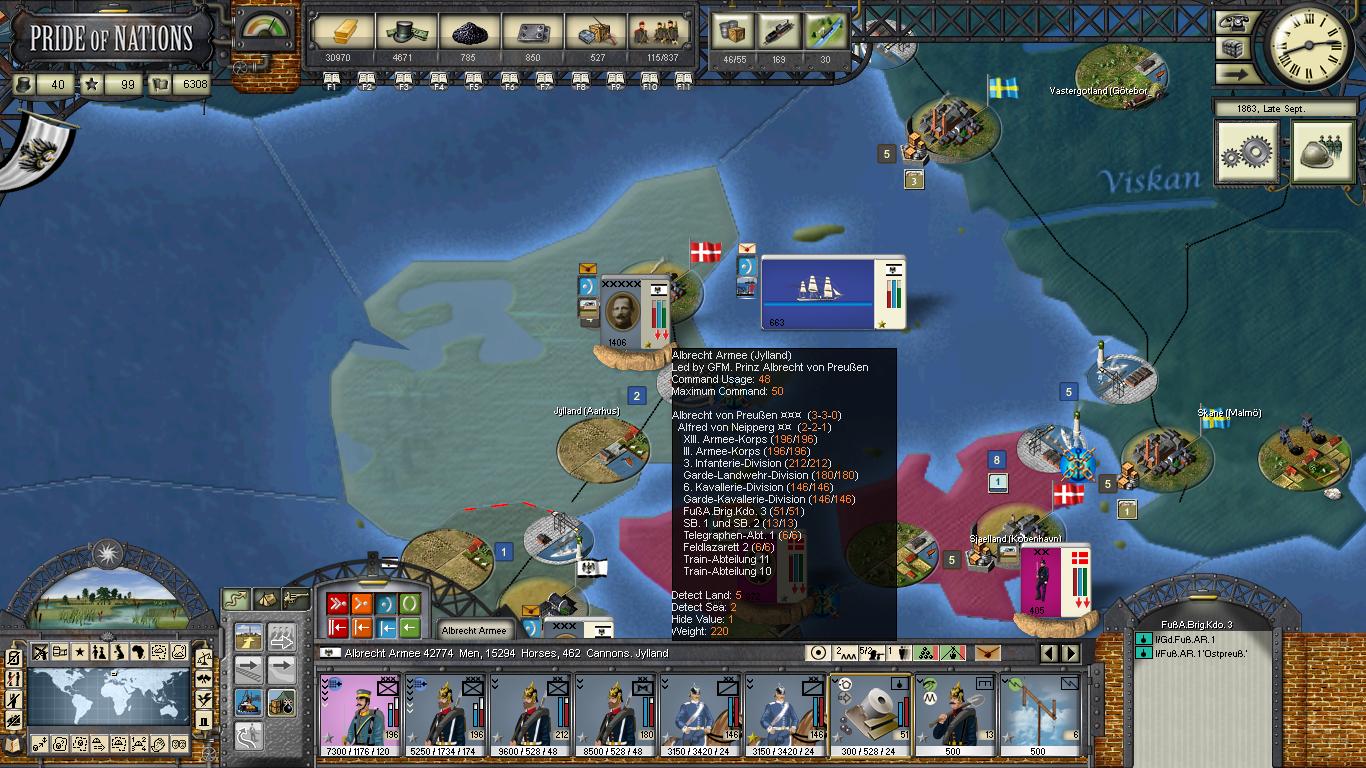 I'm engaged in my first land combat in Pon as Prussia against Denmark. This is my first combat experience, so I have done a lot of mistakes as combat in Pon is very complicated as well as interesting and funny.
