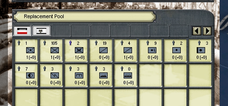 And, by the way, I believe the icons on the two tabs are wrongly assigned. If I hit the Prussian flag (white with a black eagle), I am shown the replacement options for my German merchant fleet, if I hit the National German flag (black-white-red), the options or all the Prussian troops are shown: