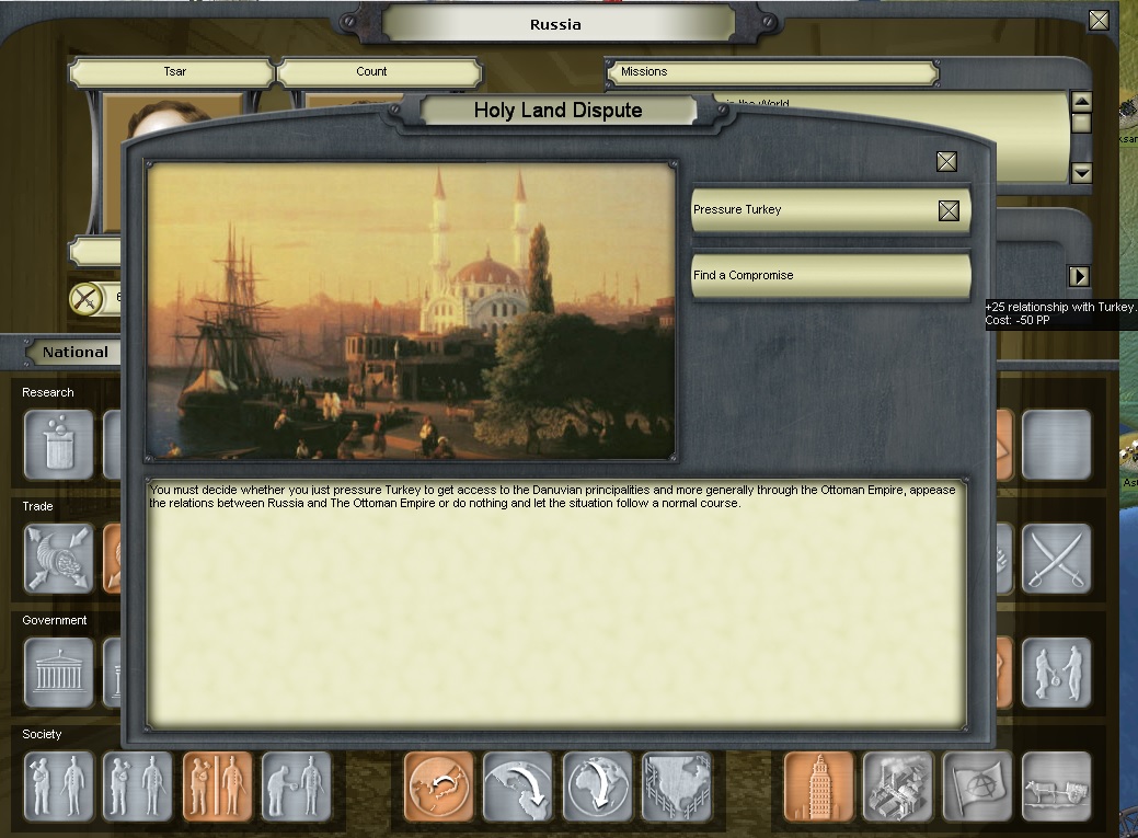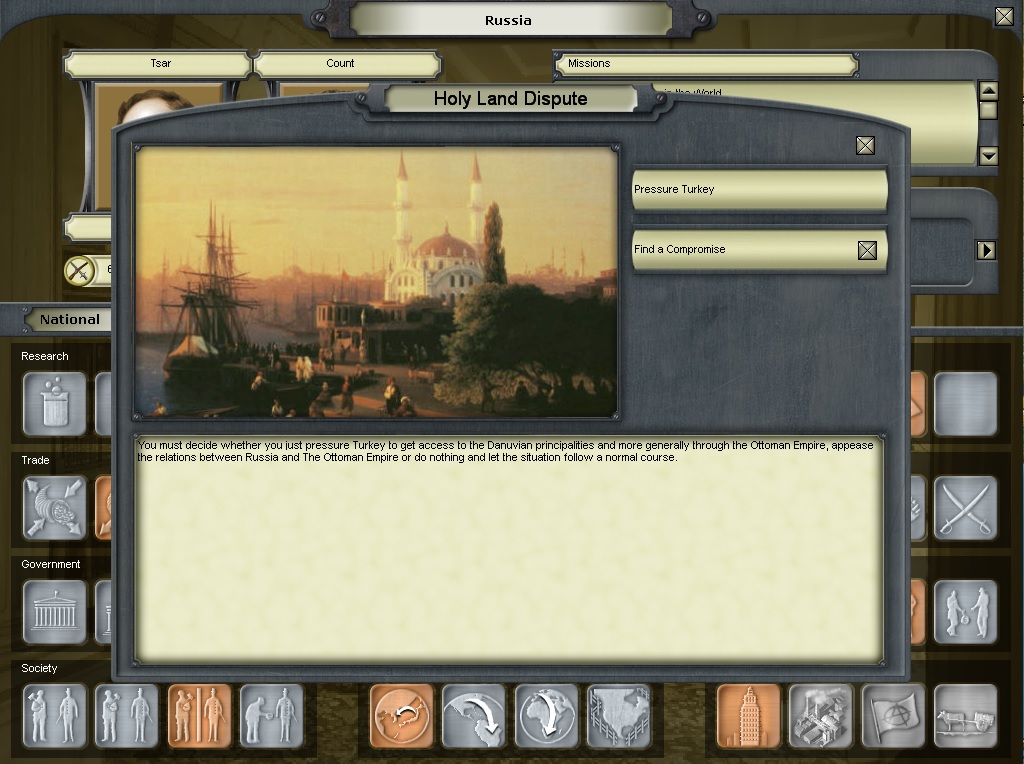I just got an event concerning rights in the Holy Land with Turkey. I have two options available. One is to "Pressure Turkey" and the other is to "Find a compromise". I'd like to select "Pressure Turkey" but I'm not sure which tab to click as when I click on that tab, the little box with X in it goes away but the same box with the little X stays on the Compromise tab. Does this mean I've selected "Pressure Turkey" or have I de-selected that option and gone ahead with "compromise"?