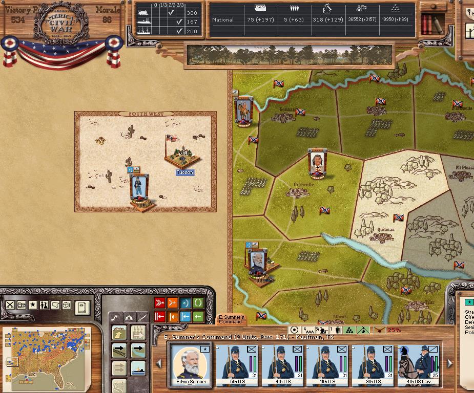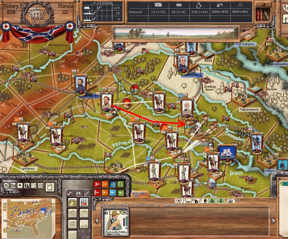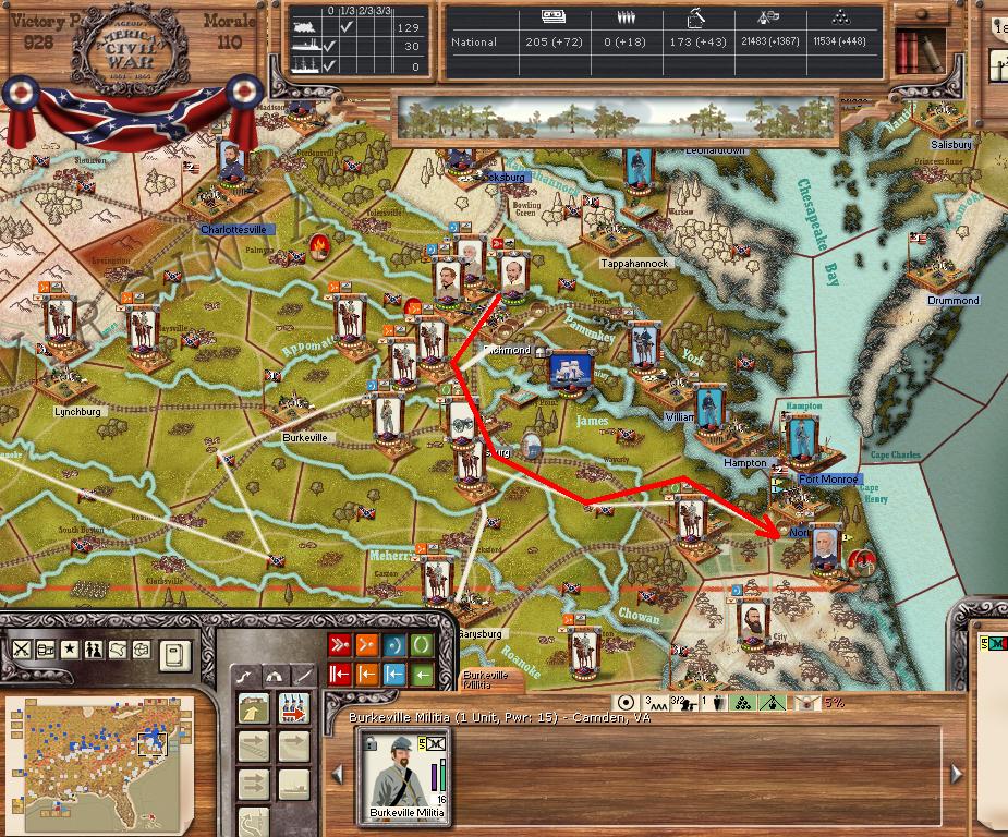There was not much action this turn (1 minor battle). Longstreet was able to march to Edenton (and capture it). There was a minor naval engagement.