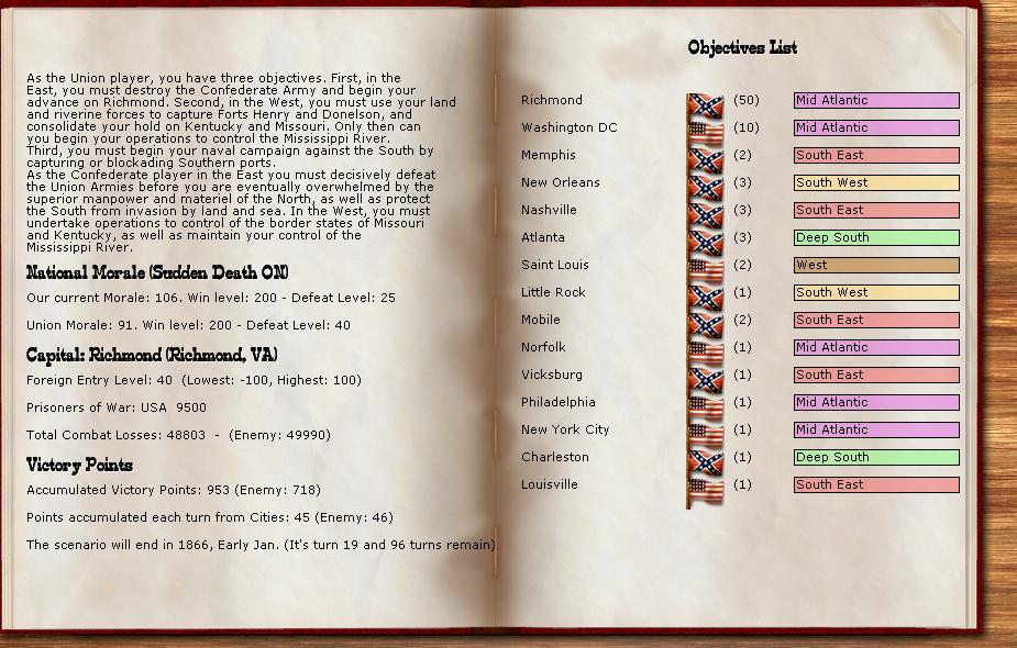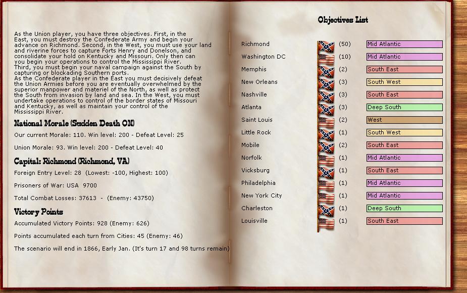 Orders - Bory and command are moving to Richmond. Reinforcements to Richmond and Memphis. The CSA inflation is 20%.