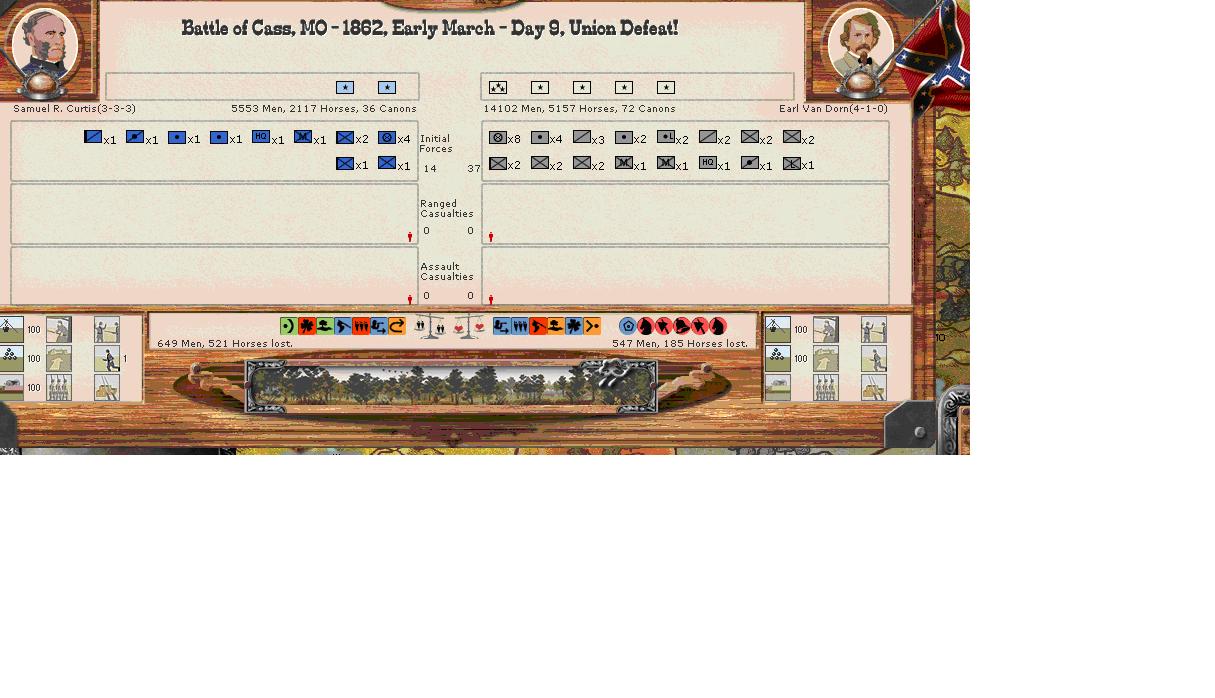 Curtis retreats before Van Dorn with a large portion of his force. A shame Siegal never MTSG.