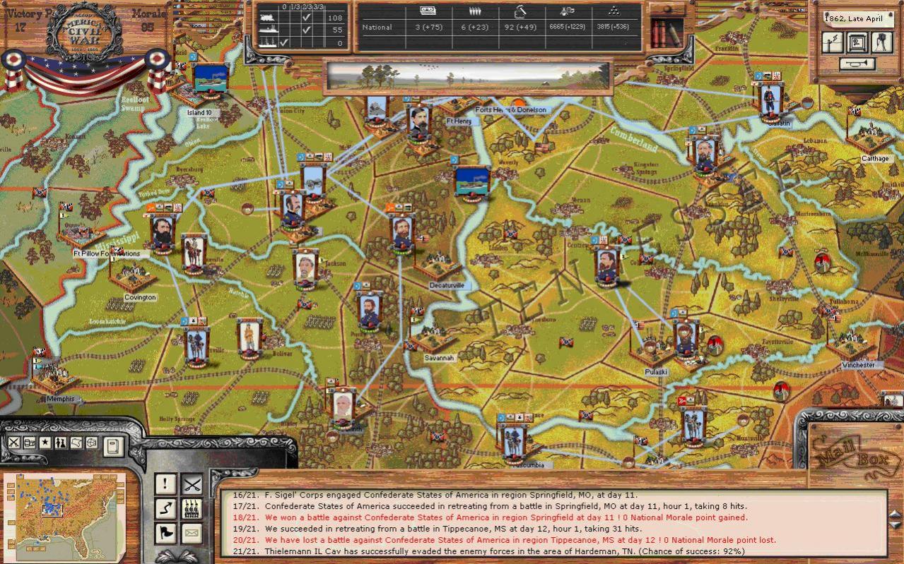 Asboth will attempt to hunt down Forrest. Pope is finally active and will land at Island 10