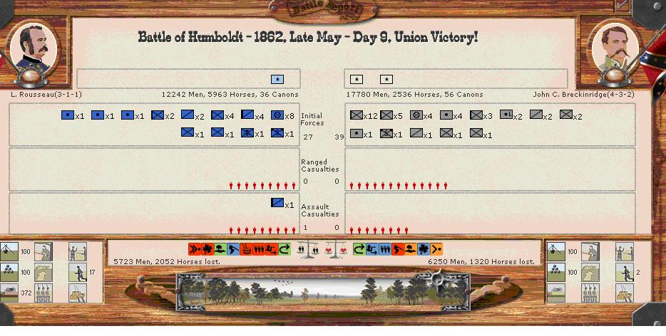 Rousseau is shown fighting off Breckinbridge and retreated to the depot at Ft. Henry, but in fact Wallace and Thomas Corps took part in the battle and likely involved Hardee’s Corps as well.