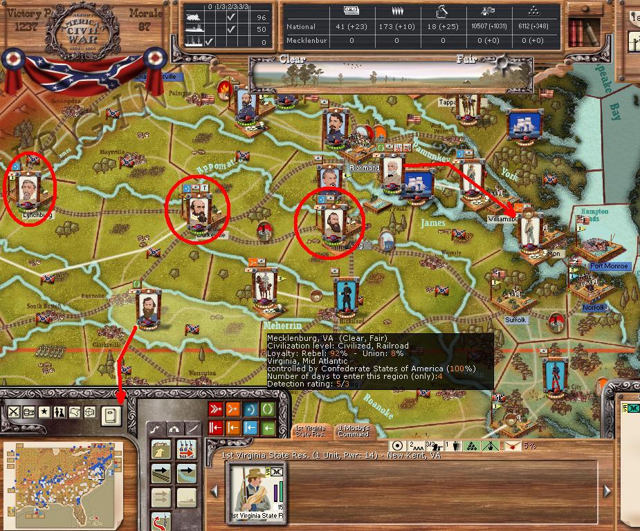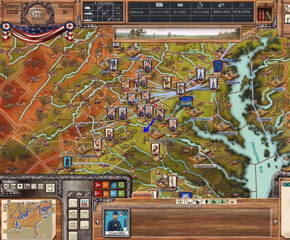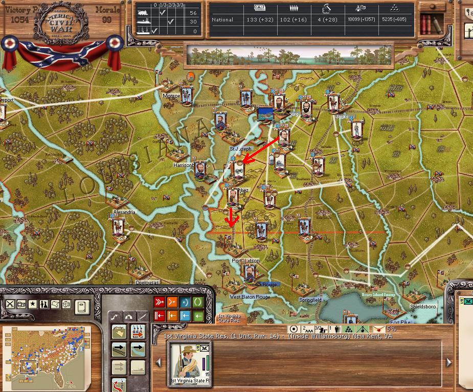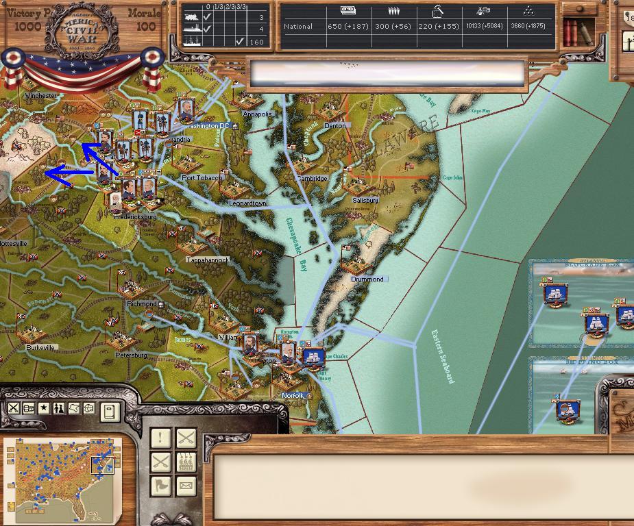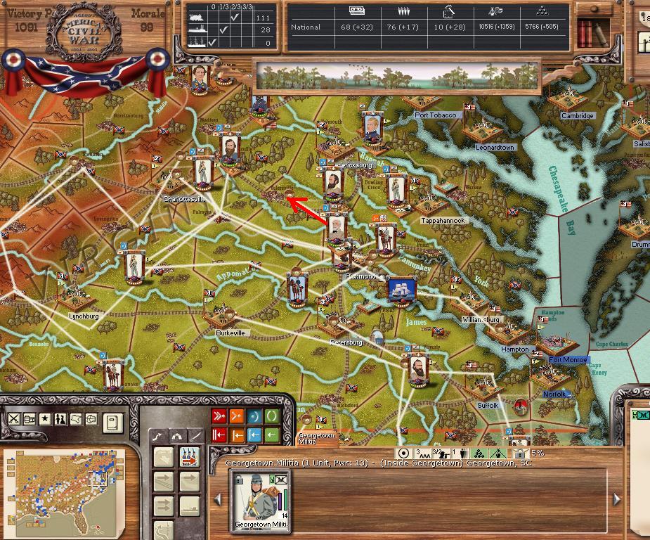 Purchases - replacements and 20 militia. Richmond is cut off, just hoping the two corps there will die with some dignity. It is pretty much a race now to see how much he can gobble up. Minor troop movements otherwise all forces need time to recover.