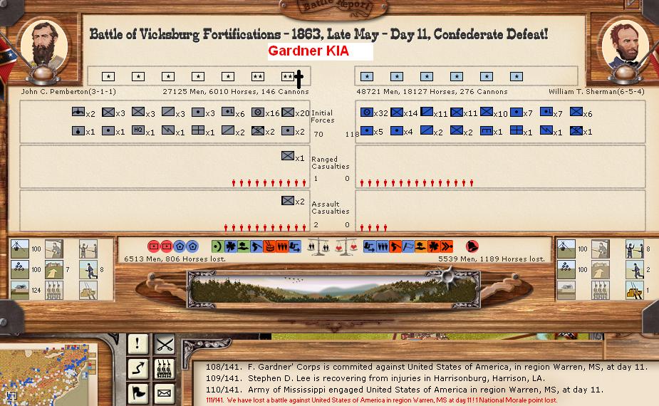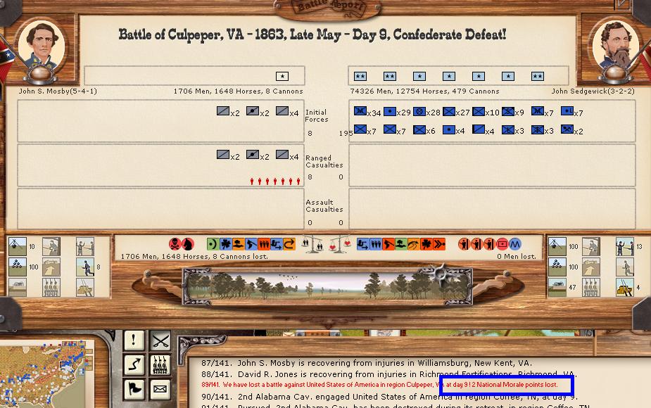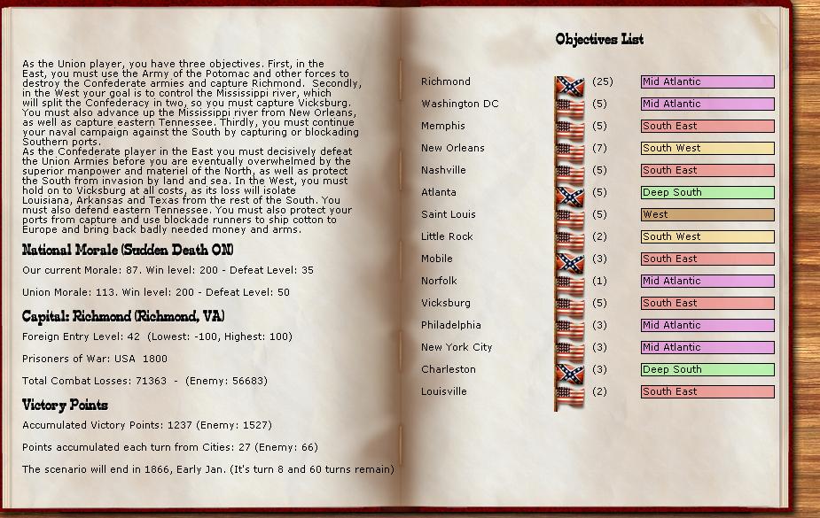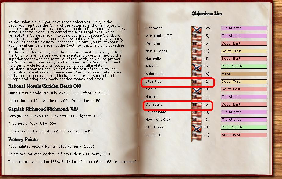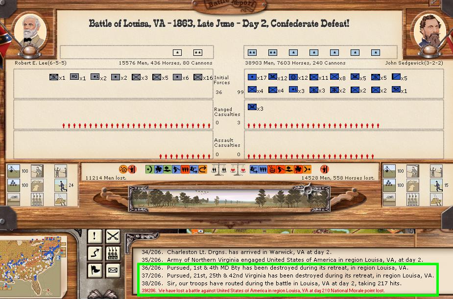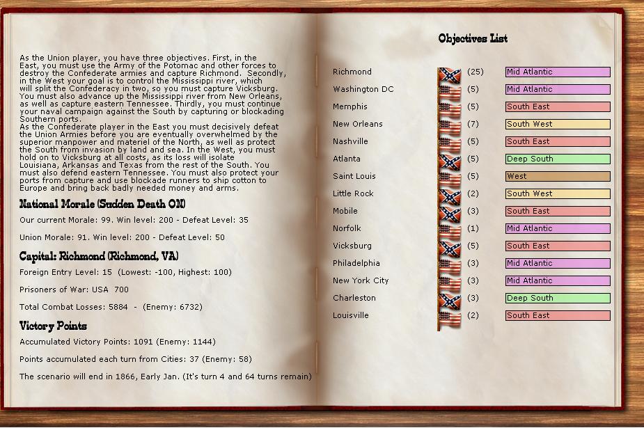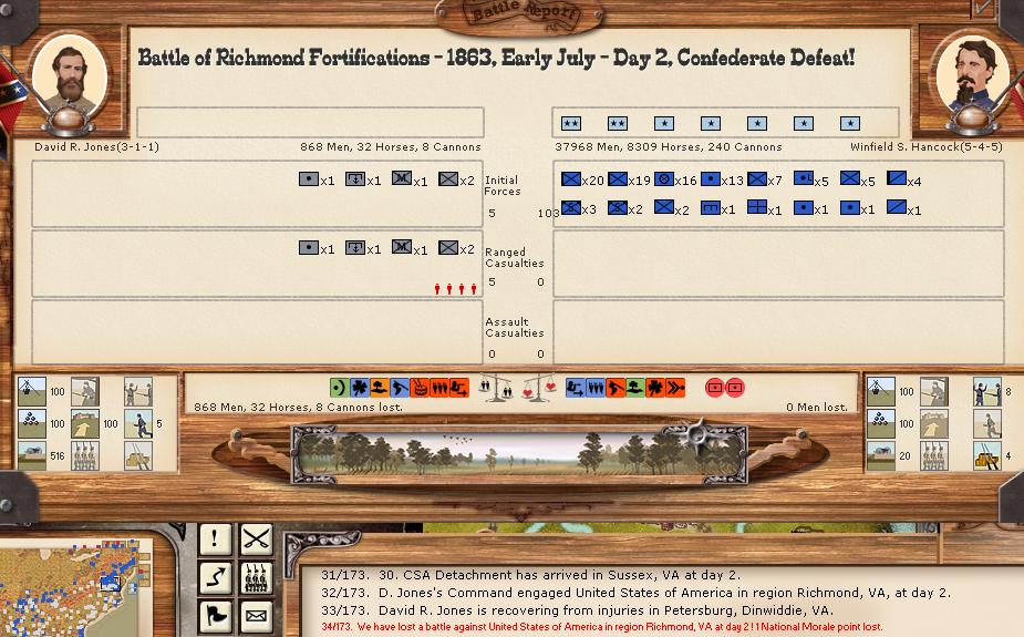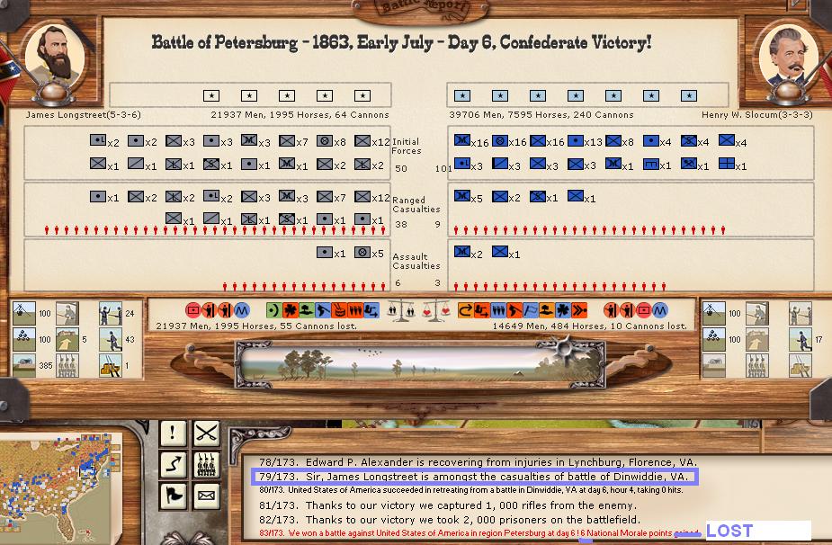 Longstreet is KIA. The union captured both Mobile and Richmond. The CSA has no capital. And the results:
