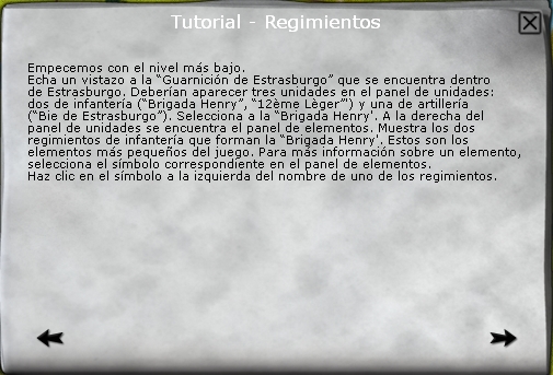 Haplo_Patryn wrote:Hola. El 2º tutorial del RoP, cadena de mando, empieza bien pero a la 2ª página indica que vayamos a la guarnición de Estrasburgo. Esta ciudad está en manos enemigas (Strasbourg) así que ahí acaba el tutorial para mí, no consigo tampoco encontrar las unidades que se cita, supongo que porque son enemigas. Vamos, que el tutorial falla por todos lados. Eso o la traducción es totalmente incorrecta.