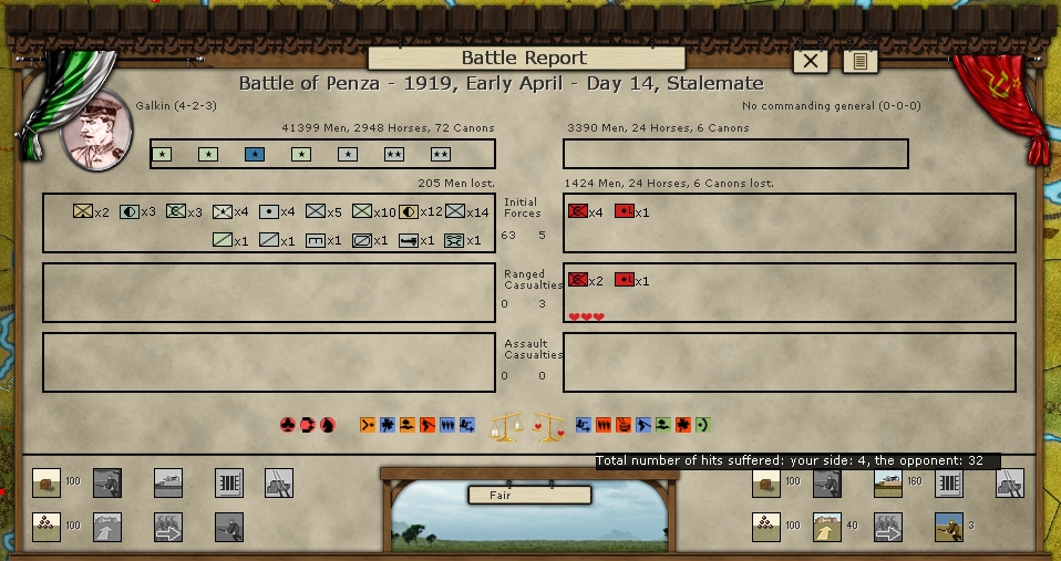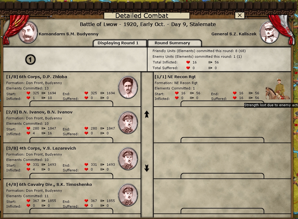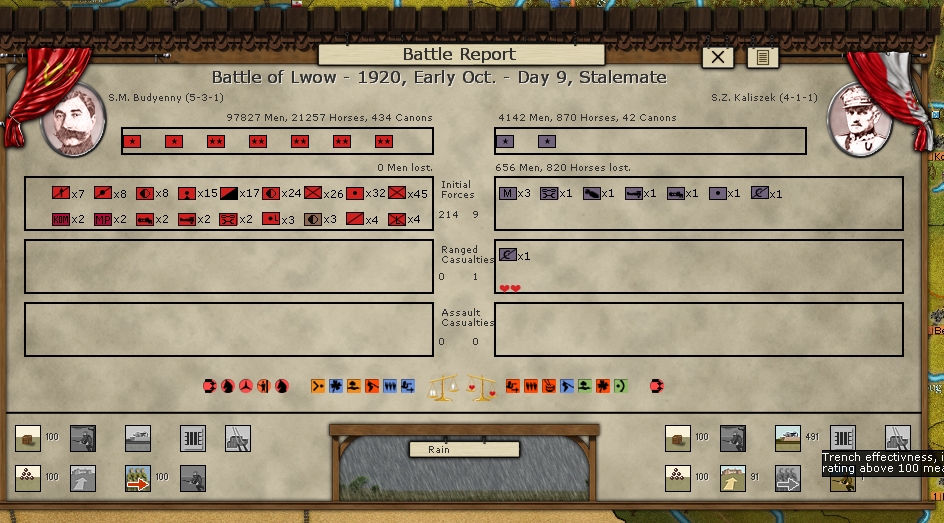 In pbem game Polish-soviet scenario there was a draw battle against cavalry unit. cavalry unit was fortified as 491 but cavalry unit destroyed, result was stalemate.