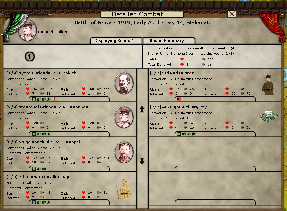 Generally playing as SB whites there were many stalemate battles especially early in turns. But I come across more stalemate battles, but by looking at the battle reports it looks like Whites should have won. Is it because of cohesion loses from moving is more?