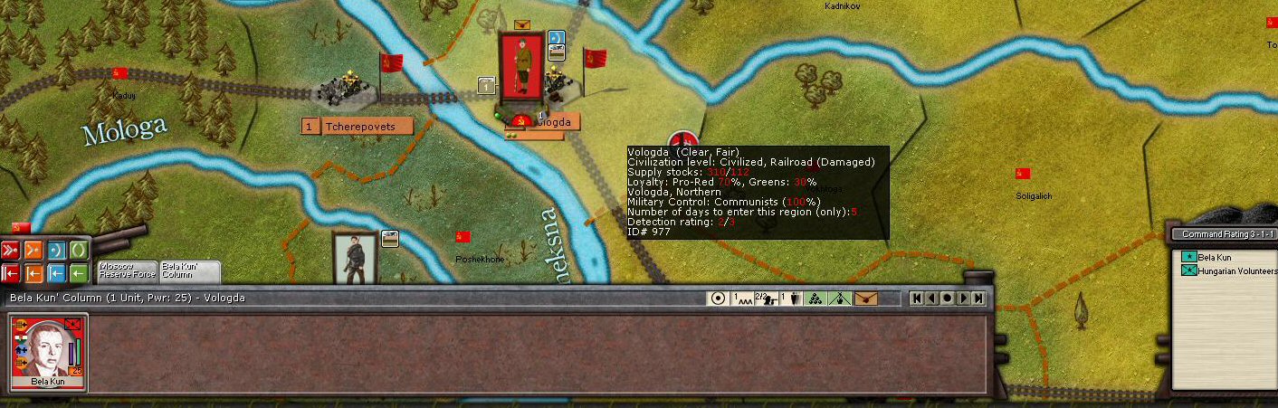 5) Red leader shortage: As opposed to the Southern White and Siberians, the Bolshevic suffers from a severe shortage in generals. The player simply cannot afford to loose any generals in combat (losses via events already are severe enough).