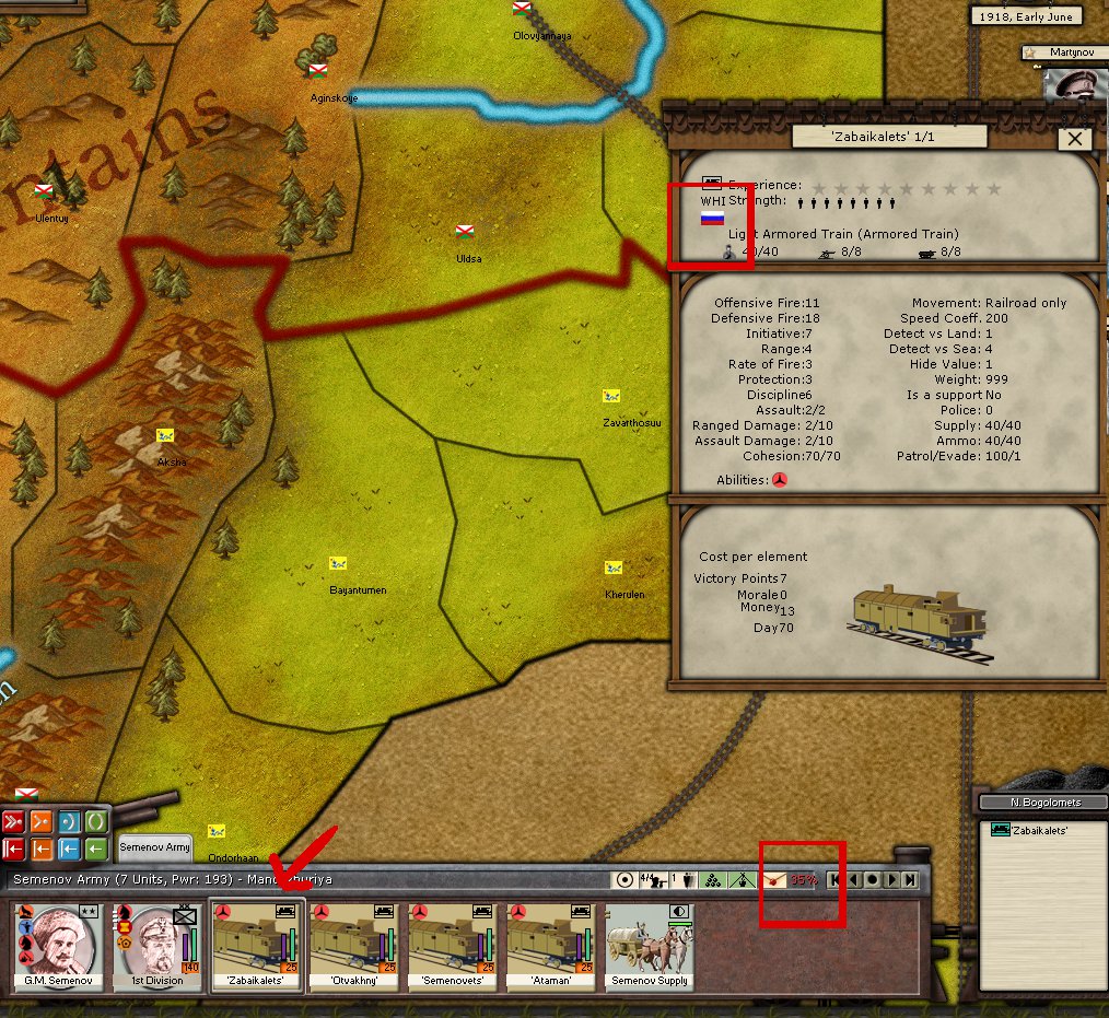 2) Siberian White has Southern White armoured trains. These should be changed to the existing Siberian White light armoured train unit (uni_WH3_Amt1). Otherwise there are some ugly command penalties.
