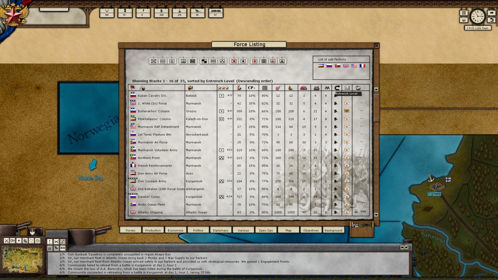 ex : Kuban cossacks(only) force have 4 entrench level.