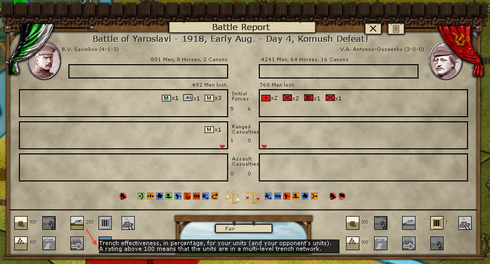 Baris wrote:Entrenchment level was max 4 as I usually sit one corps in Kazan whole year. Battle report showing as max 400 entrenchment with art.