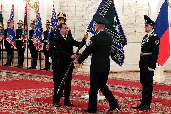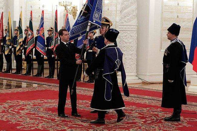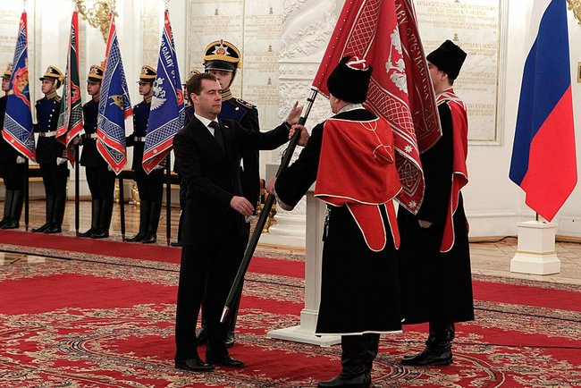 2011 :December, Medvedev presented military standards to the Cossacks