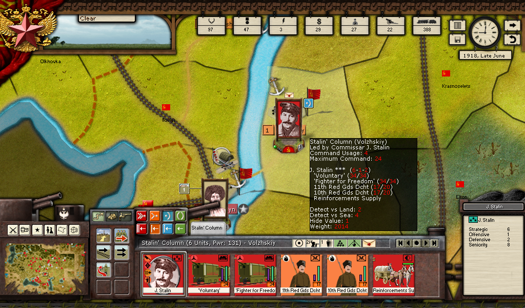 Stalin spawns in Volzhskiy with 2 armored trains that can't go anywhere as Volzhskiy is not on a railroad.