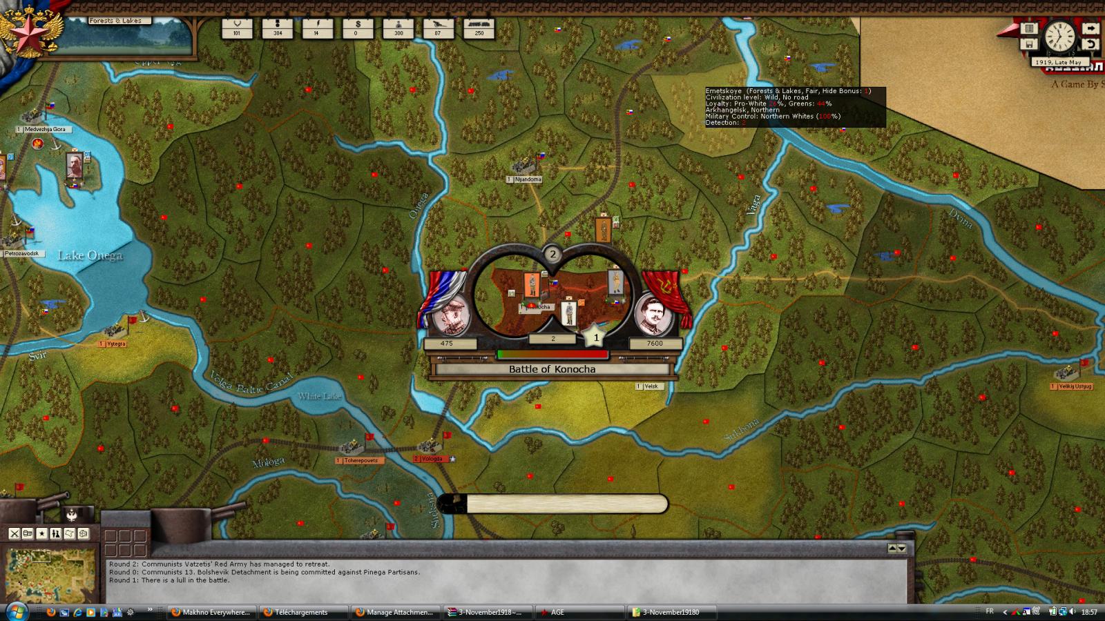 When I process this turn as the Southern Whites, all the battles (from the frozen North to the Caucasus) are, during resolution, "led" by Makhno. On the battle report, there are NO red commander at all, though.