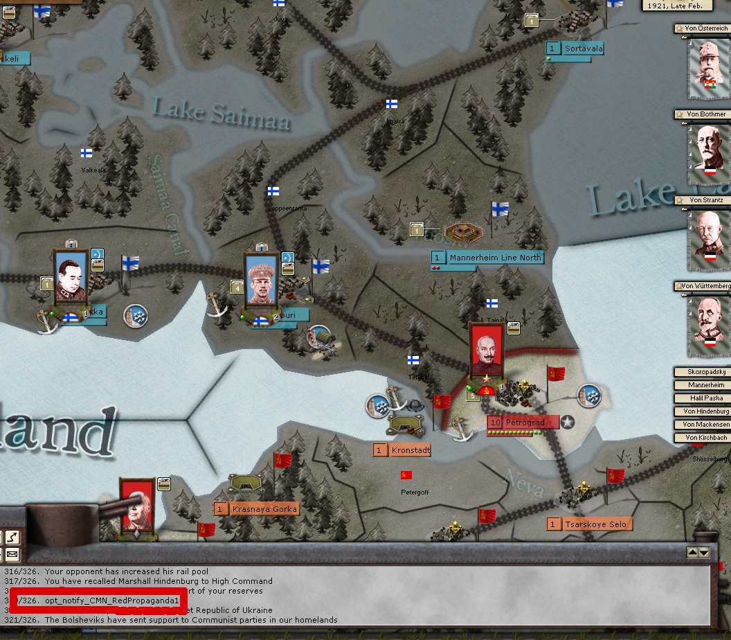 4) The event evt_nam_GER_PetrogradControlled2 seems completly screwed up. It fired multiple times. The first time as you can see in the pic before I actually had any troops in Petrograd.