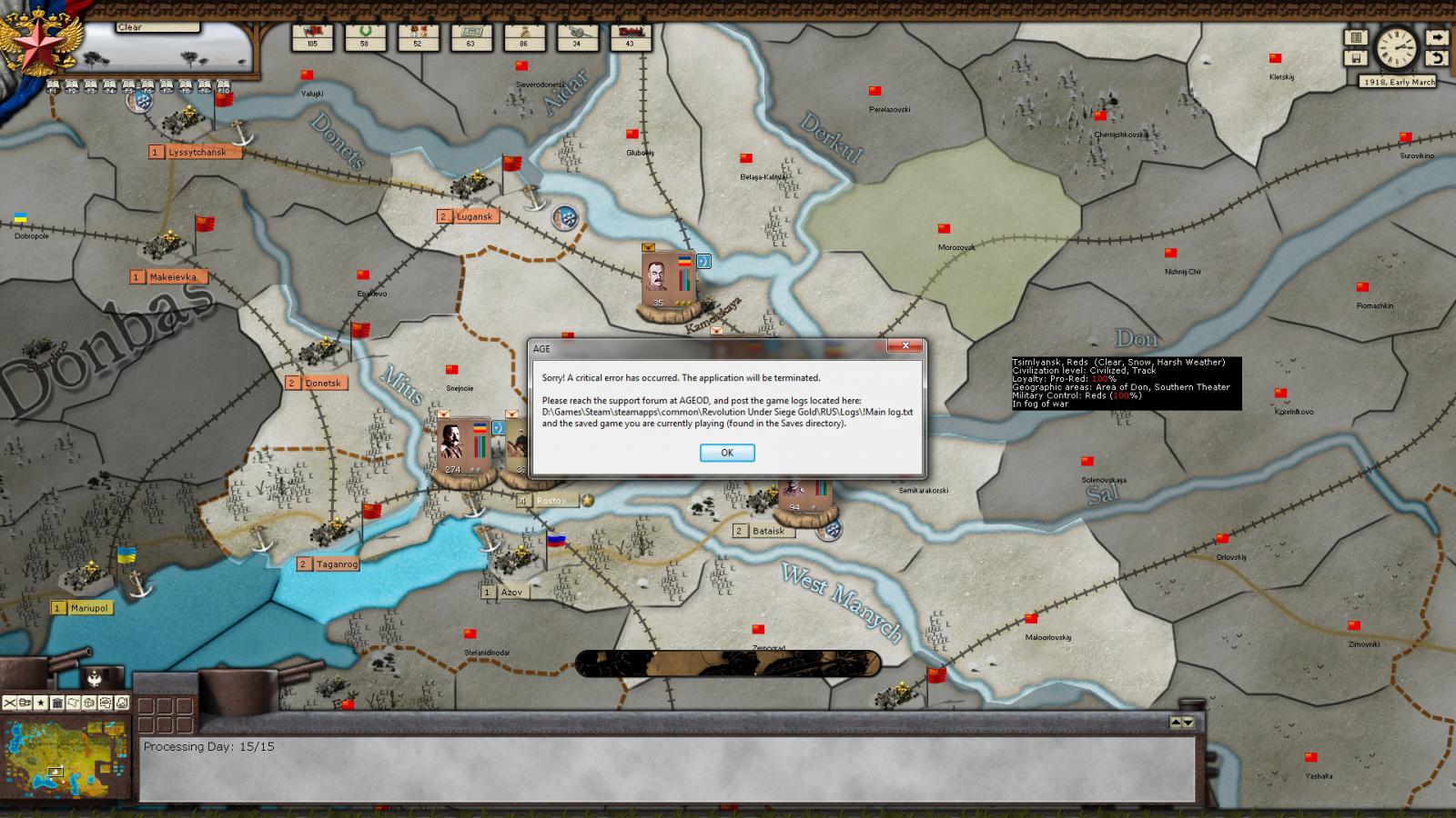 Coming back to RUS after a few years away, and bought & installed RUS Gold. Was getting crashes as above every few turns. Couldn't remember anything like this with RUS, so installed this, patched to 1.04 and than noticed 1.06a so patched with this as well. As I thought ran with no problems.