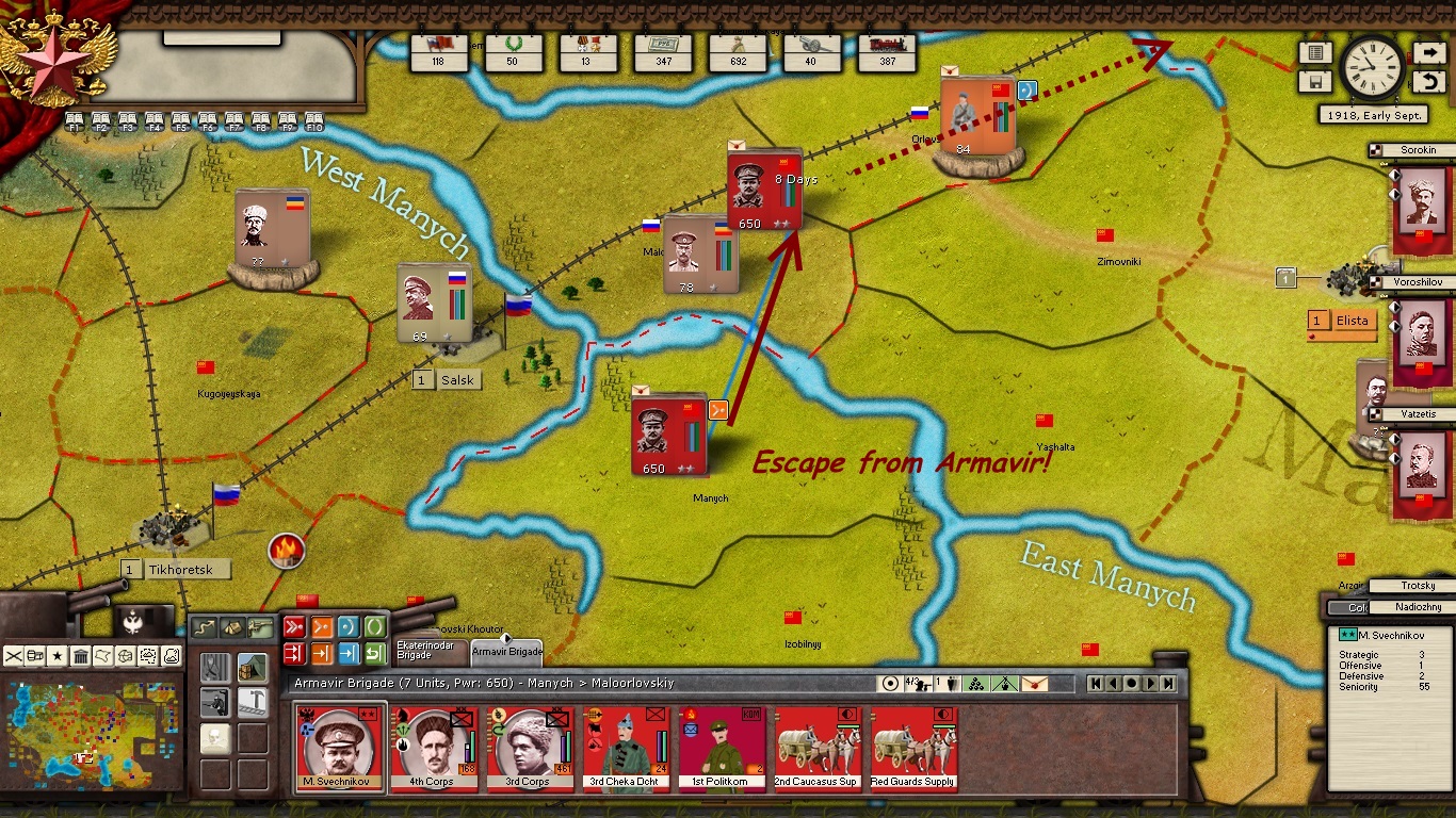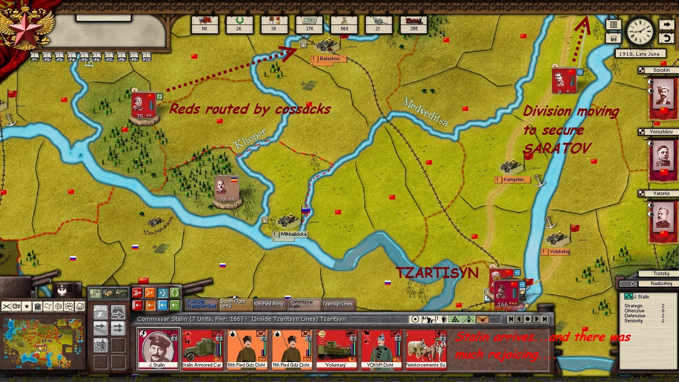 Over 1500 points in combat power is immobilized at TZARTISYN due to Stalin's incompetence! And now the city is threatened with encirclement. Oh, to have an option to put a bullet in that man's twisted brain!