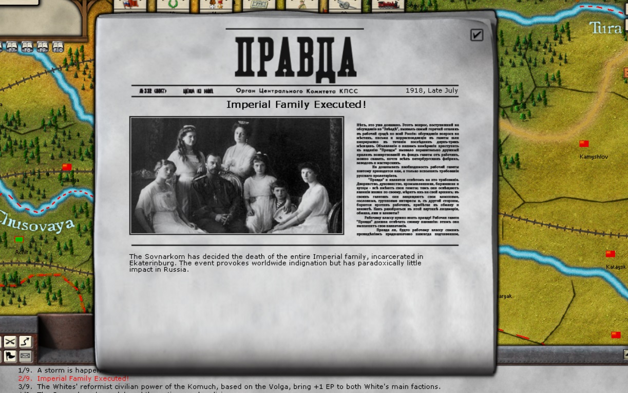 Thank you, andateip, for reading and commenting on this AAR. I have yet to beat the White AI (after five games!) but I have high hopes for this particular conflict. The enemies of the people will be crushed and the dictatorship of the proletariat will rise from the ashes of reactionary oppression and lead humanity into a golden future of freedom and prosperity...or something like that...