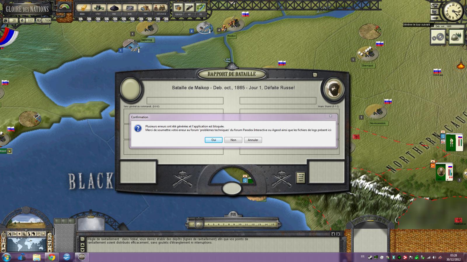 j'ai un crash du jeu suite à cette bataille: