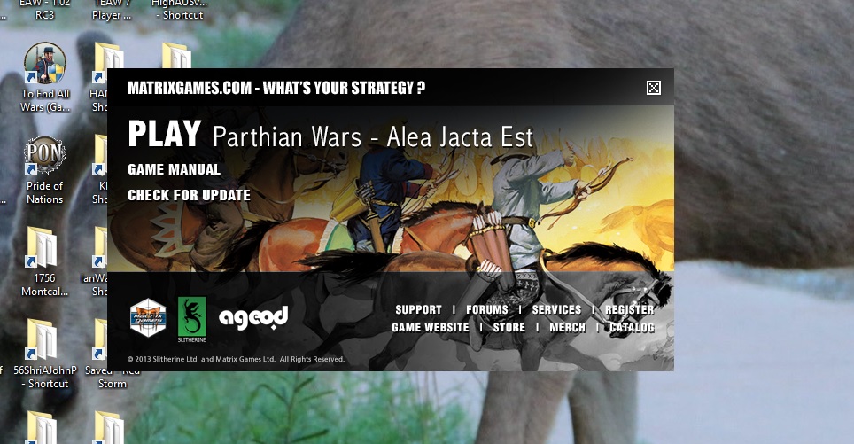 1. AJE+PAR, with the 2 DLCs, with latest patch (BTW, 1,04 has already been released on Seam, still waiting for a Matrix/Ageod release)