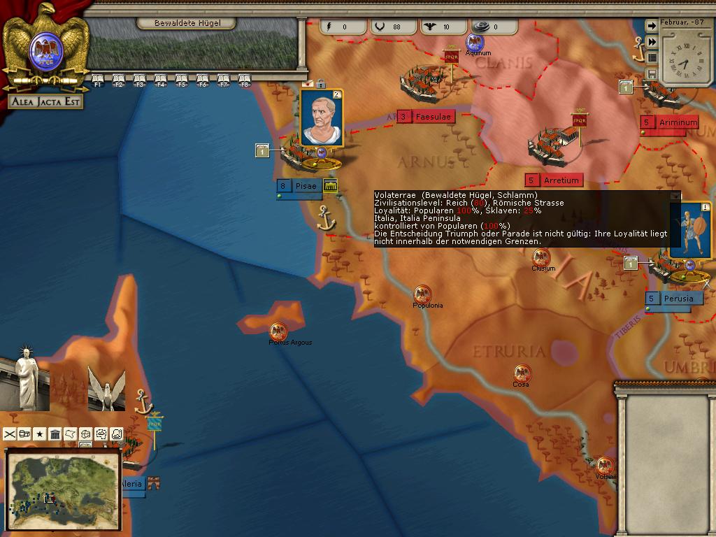 Found another Bug (I guess). Playing Optimates in Scenario vs. Sulla. Whenever I click on the Emperor-statue to get to the social decisions, I have non. Clicking on the eagle to raise legions or other troops works fine, F3, F4 or F5-decisions work either. Only the decisions on the social map don't appear.