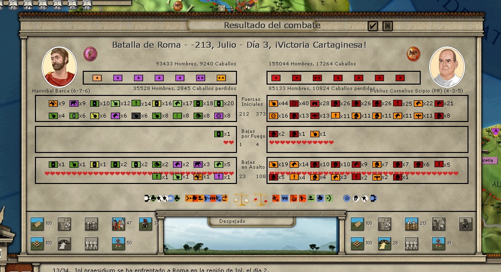 I'd love to hear from experienced Roman-side PBEM players that I am wrong, but does this all boil down to waiting for Hannibal to turn gray? The campaign doesn't seem too fun in terms of balance if that is the case. Yes, I know he did win huge victories like Cannae and Trasimene. But not every battle, even in his prime, was that one-sided.