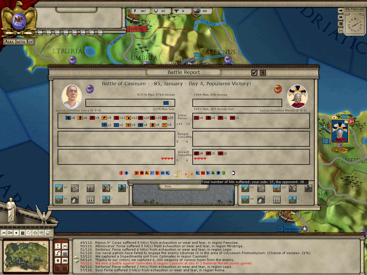 Simple says 37 to 38. Detailed says 6 to 34. This isn't the first time I've seen this. In fact, now that I look, every other battle in this turn is off by some amount. The simple report always has a higher amount of hits. Am I missing something?