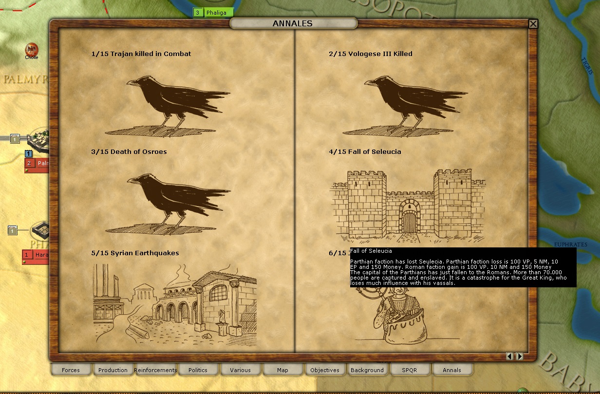 For now only the Trajan's conquest 114 AD scenario has his options and events displayed.