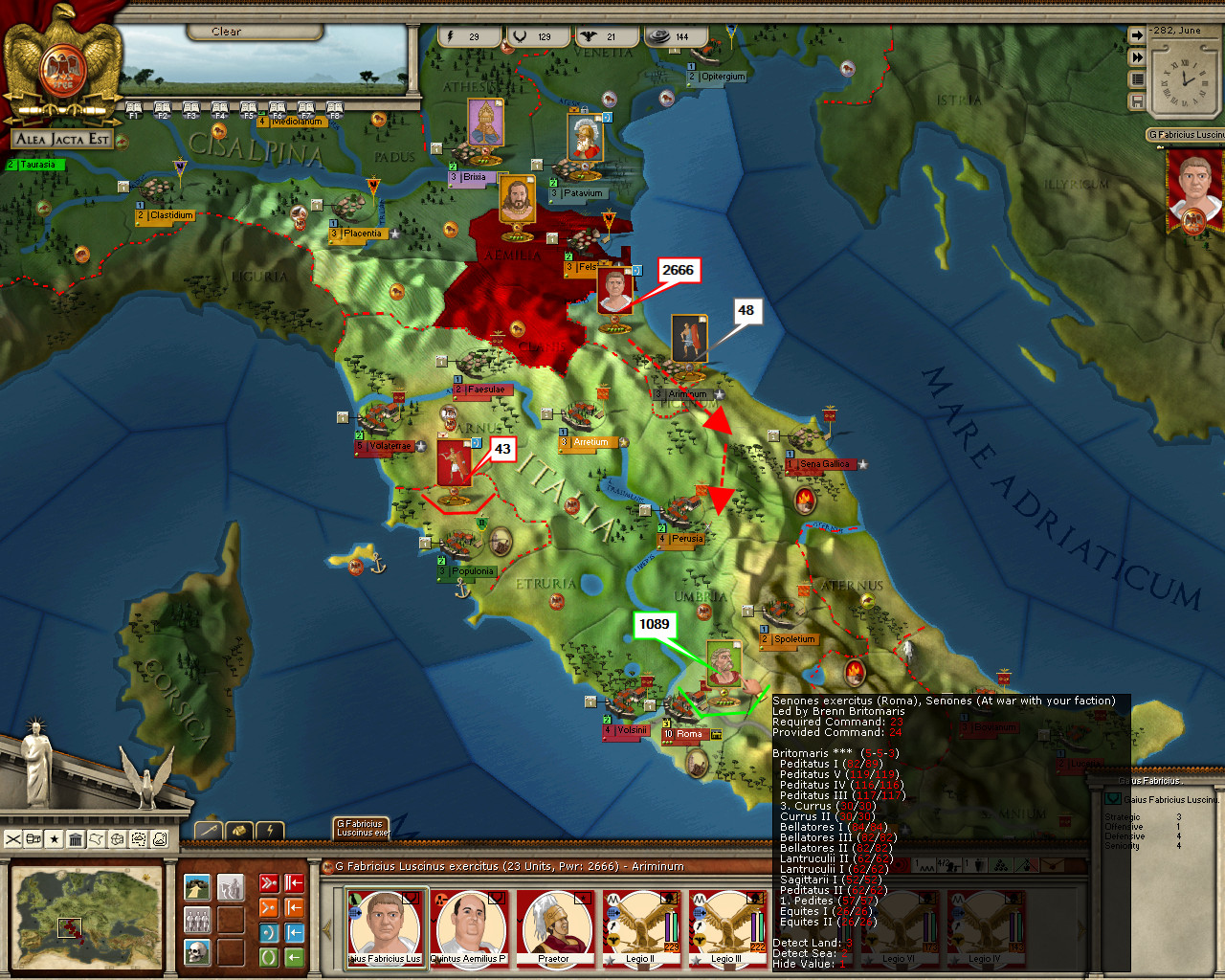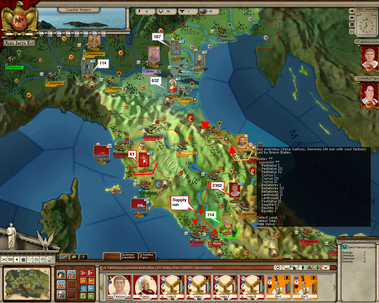 Papus will take a cavalry force around the south to reclaim some empty provinces, including Casinum.