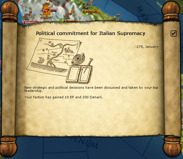 We get another “Political Commitment to Italian Supremacy” event, so more cash and EP come rolling in.