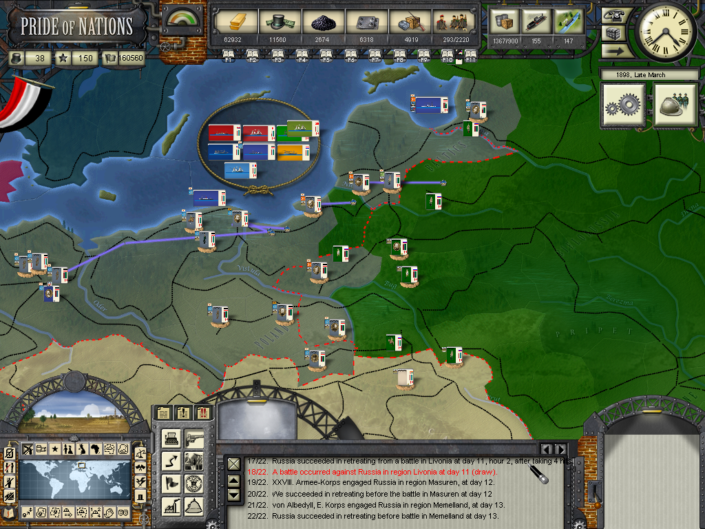 and continue to use my effective stacks too to get good positions so that I can dominate the field of battle by moving fast units around the field.HerrDan wrote:Our 6th army commanded by von der Goltz continues to advance towards Riga and the russians attack us in Memelland trying to cut the supply lines to the 6th army, we ordered the 6th army to continue its advance towards Riga as we're going to counter attack in Memelland to restablish our lines.