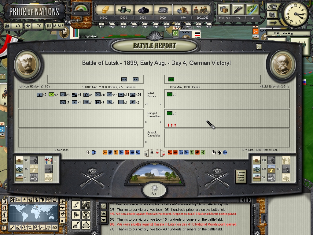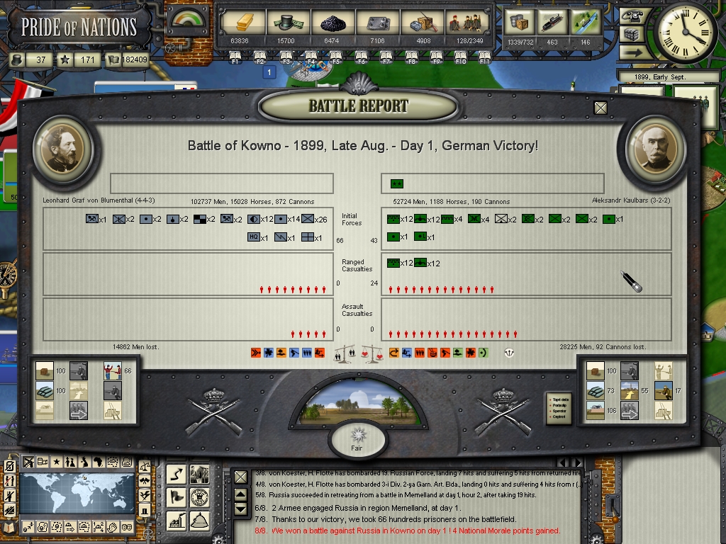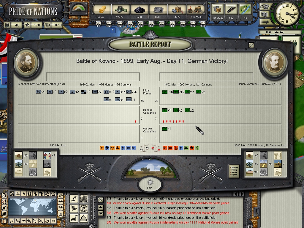 HerrDan wrote:Our offensive against Wilna led by our prince Albrecht von Preußen is going well and we defeated the russians in another great battle inflicting heavy losses on the russians while suffering few. Our prince is proving to be a master tactician!