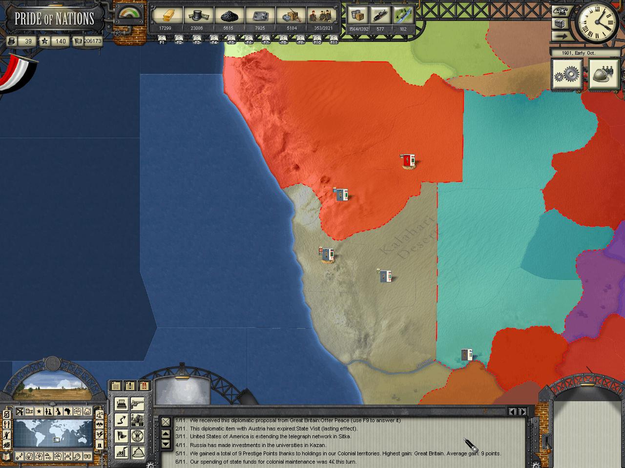 and if the americans think they can do something about it, I'll put the plan to invade their cowboys country into action!Kensai wrote:Well, if you had knocked the Royal Navy out of action beforehand, it should have been relatively easy to land and crush them. If you want to see a Great War in the historical era, you need to stop all wars NOW and let the nations build up their forces as soon as possible. But decide for your "reward" first! I would get a nifty African colony!