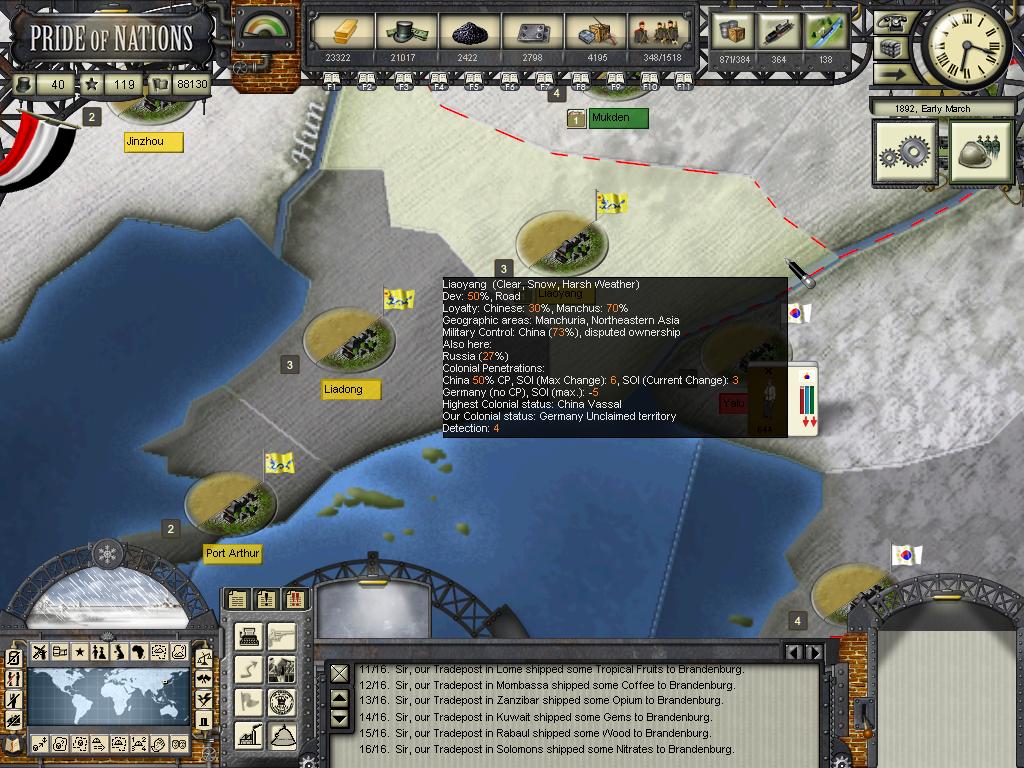 This war is a nice opportunity for "involvement". But do you have a casus belli against the Russians? Are you planning to create one in roleplaying? Well, theoretically you should stay put given that it was Russia that declared war on China. Btw, the 80s China is supposed to be much more stable than the one in the 50s, the Taiping War must be over and the country relatively united. I expect them to be able to bounce the Russians in many instances, unless the Russians manage to bring in troops from Europe.