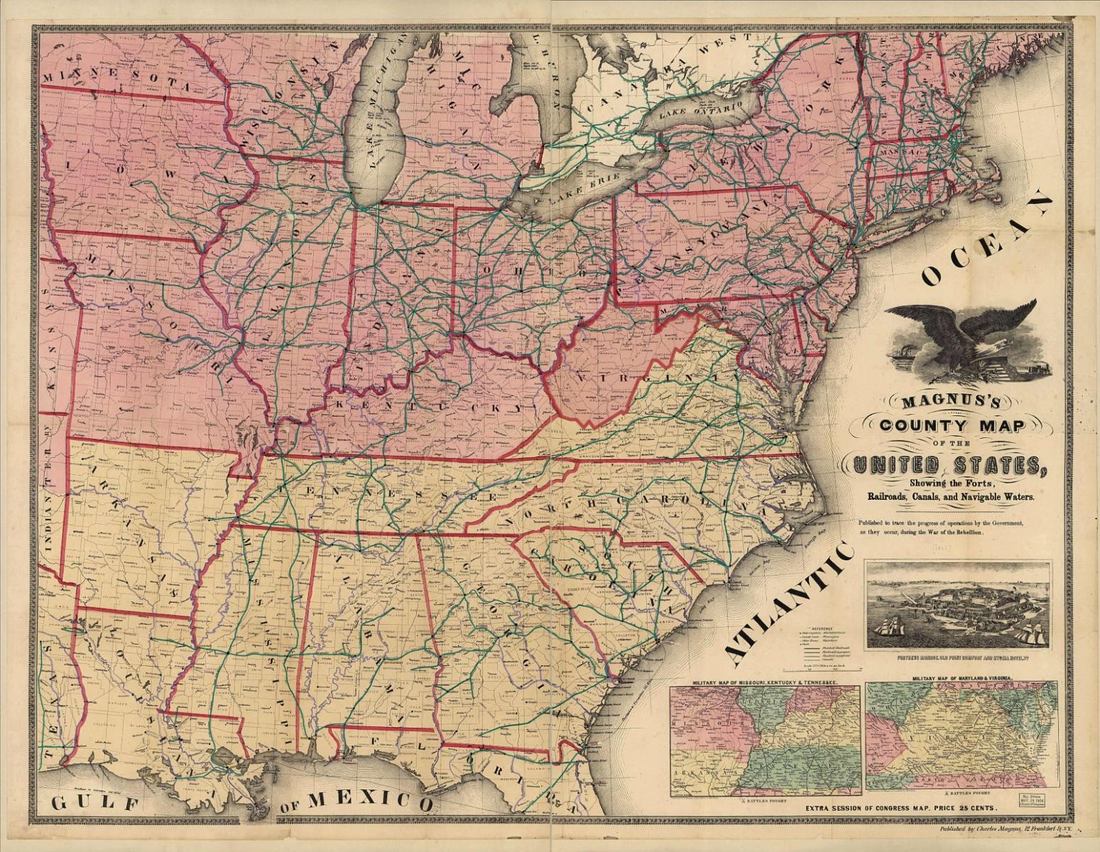 -marked state capitals and important towns distinctly