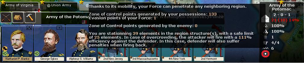 Bill's Boy wrote:Is there some minimum size for a garrison to control an Objective Town? I ask because I have taken Norfolk as the Union player and have it garrisoned with a militia regiment inside the city but that hasn't controlled the town. I have 100% Military Control but 23% Loyalty.