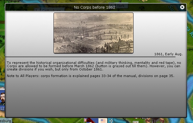 Cardinal Ape wrote:If you are playing against the AI they will attack Manassas before October. Don't move too many troops out before they do.