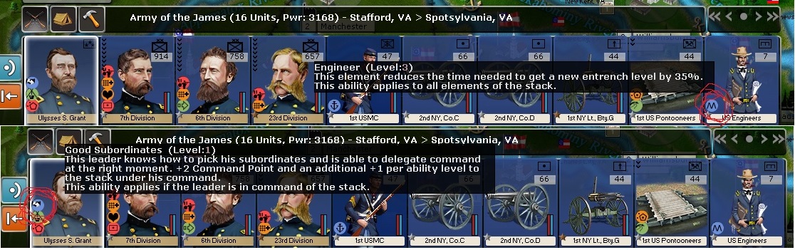 In adition keep in mind that the sentences " this ability applies if the leader is in command of the stack" and " this ability applies to all elements of the stack" are very important. There are abilities that will only work if the owner general is in command of the stack ( the one most to the left in the stack) and there are others that will work even if the owner general isnt in command.