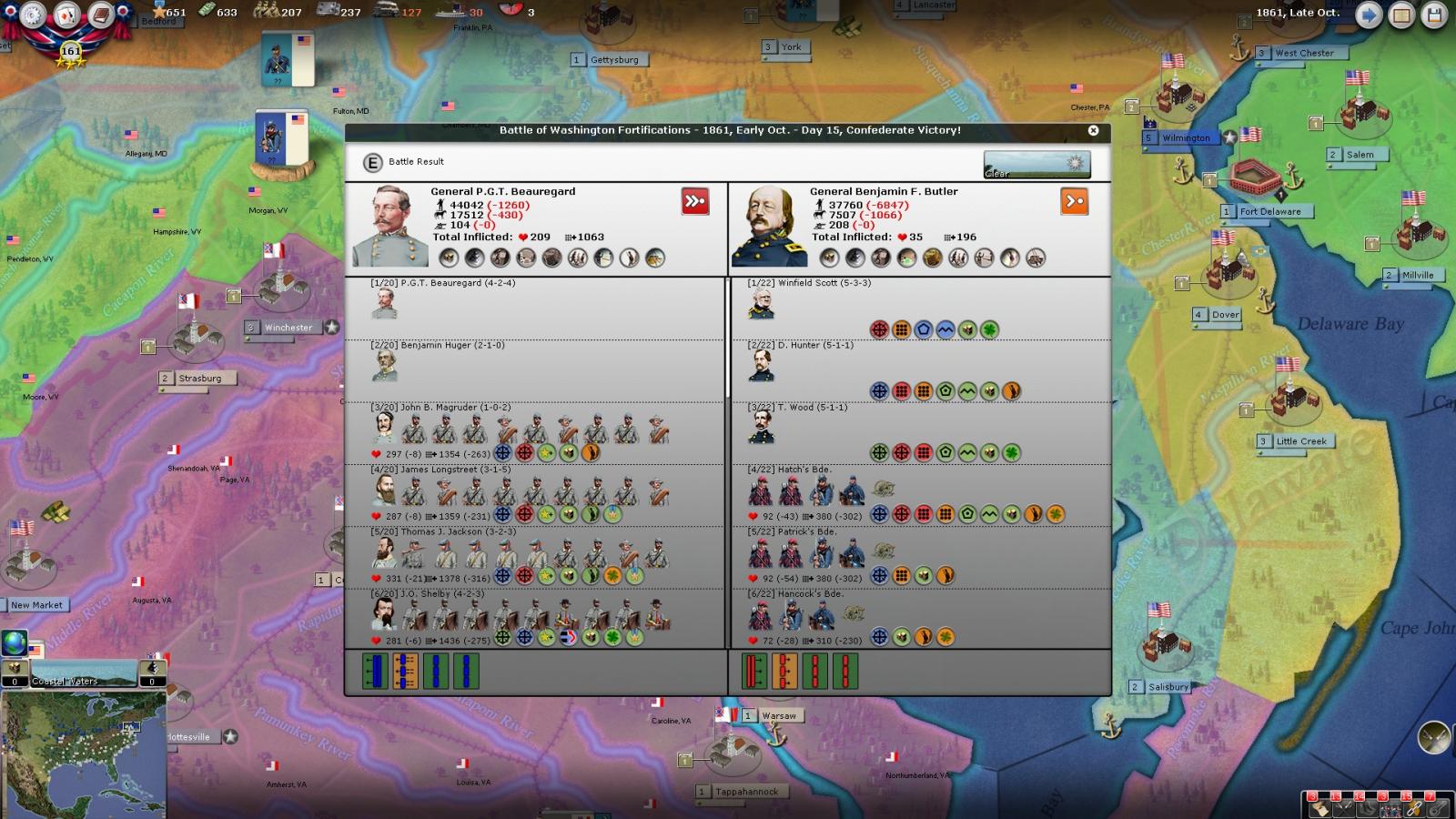 Now i feel i am in a road crossing. Should i replace Johnston, P.T.G or any other one with Lee ASAP and assemble my forces and try to invade through Maryland, bypassing Gettysburg and threaten NY,Baltimore, Washington and so on.