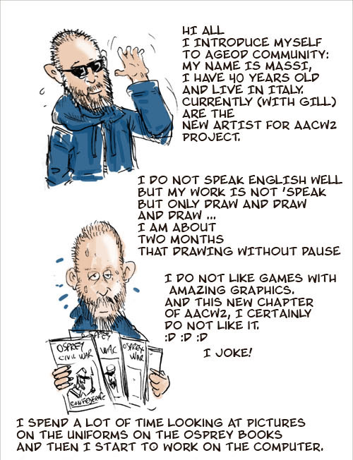 richfed wrote:Welcome massi! I look forward to seeing your work both here and IN the game when it is released. AACW is a game that has endured and is very easy to immerse oneself in. If you guys canmake an even BETTER Civil War game that keeps the flavor yet enhance the gameplay ... well, I will be one happy retiree!! Thank you.