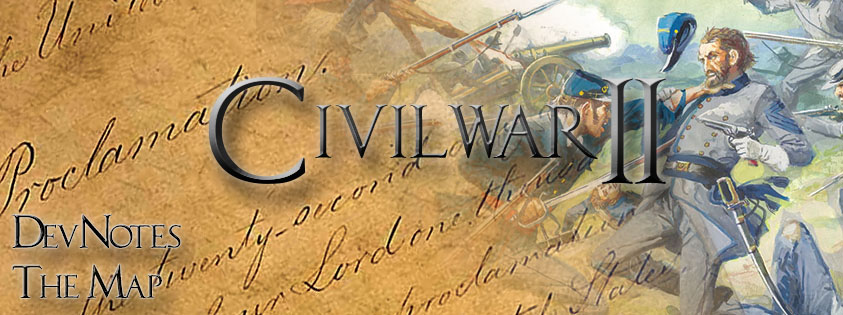 The map, in all strategy games, has a paramount importance, as it regulates the flow of the game. This is especially true in CW2, as some avenues of passages were favored by the protagonists, while others areas were much more quiet. One of the difficulty we had to face since ACW1 was to represent in an appropriate way, the short distance between the two enemy capitals (Washington D.C to Richmond are only 150 kms away) while keeping the game playable anywhere else, like along the shores of the Mississippi or the vast expenses of the Atlantic Ocean.