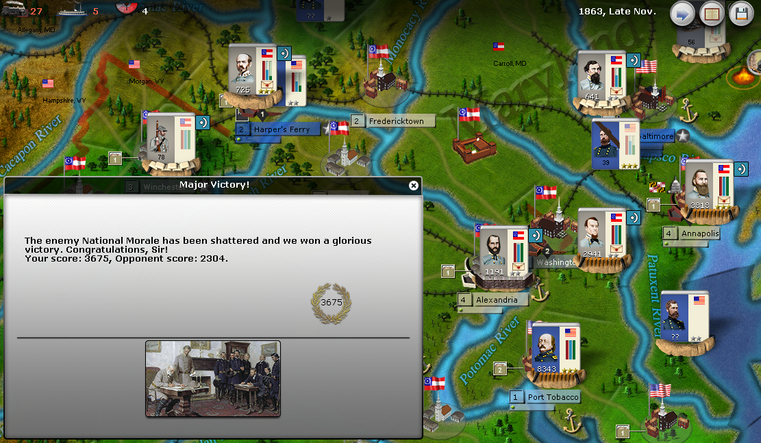 ohms_law wrote:Unfortunately, it feels somewhat hollow. Don't get me wrong, I'm satisfied with my win; it's just... there's something wrong with the AI at mid-game. The AI was good for the first year of the war, or so; after that, it seemed too passive and it seems to me that it didn't take advantage of the resources that it had and the possibilities to organize it's forces to optimize those resources.