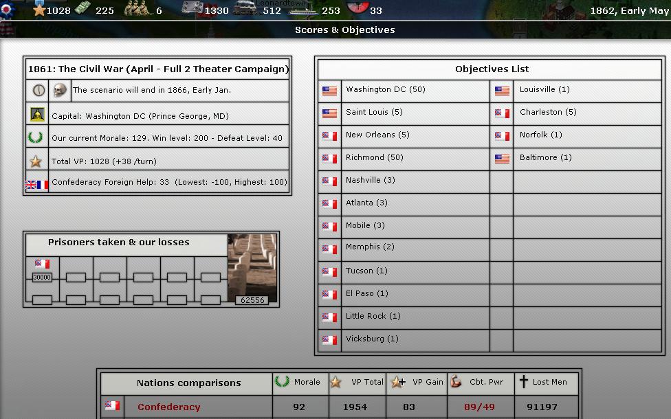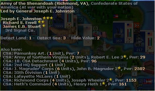 Gray Fox wrote:Athena currently has 92% of my land force/half of my naval power and has $1380/1400 conscript companies/144 WSU on hand. She has her replacement pool covered, except for missing 120 chits for heavy, i.e. coastal artillery. I assume that she is keeping a fixed percentage of resources available in case of battle losses.