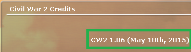 1) Before starting a game both players should verify that they are using the same version of the game. You can find your version by starting the game and clicking on the 'credits' button. It will be shown here: